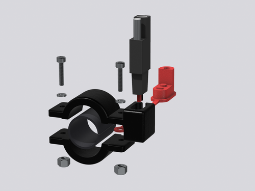 The bracket is 3D-printed utilizing a carbon fiber nylon composite material. The dust cover is 3D printed of industrial nylon. Both parts are heat-treated to maximize heat-resistance and strength properties.